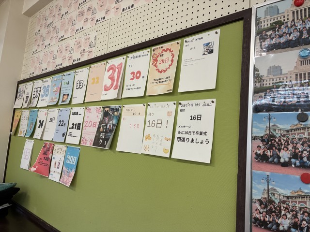 一人一人が、卒業まで登校する日数を担当し、あたたかいメッセージも添えられています。