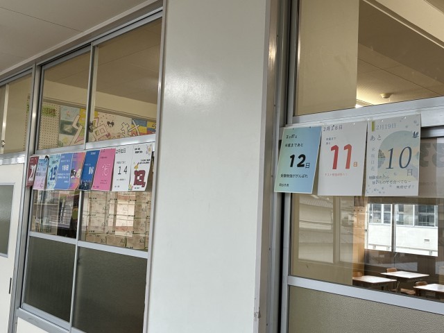3年生の教室には.カウントダウンカレンダーが貼られています。