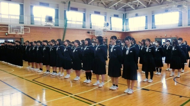 卒業式を明後日に控え、今日は体育館で全校生徒による合唱練習を行いました。