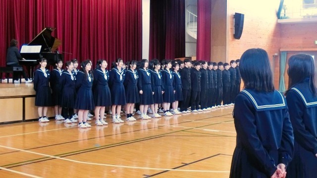 全校生徒で合わせるのは今日が初めてでしたが、3年生が上手くリードして美しい歌声を響かせていました。