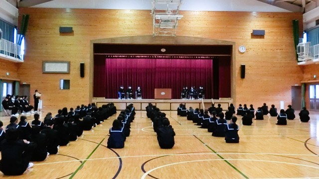 立候補者は全員2年生で、「校則の見直し」「全校レクなどの行事の充実」「目安箱の効果的な運用」など様々な公約を力強く訴え、全校生徒は真剣な眼差しで耳を傾けていました。