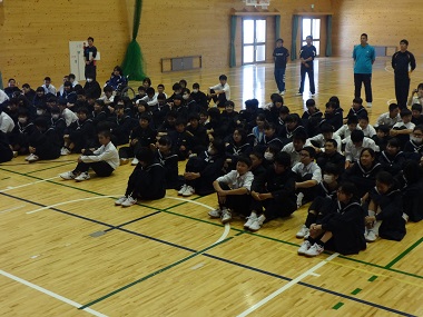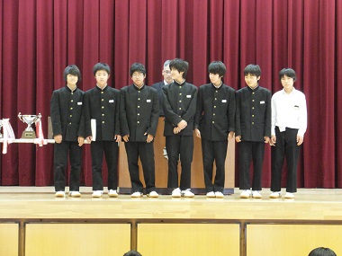 4限目の枠で集会をし、春選手権大会の表彰をしました。