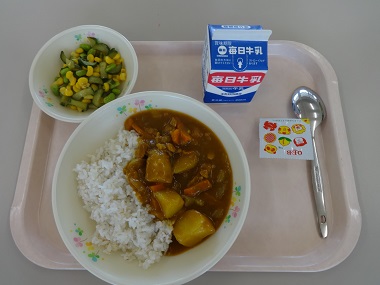麦ごはん チキンカレー コロコロサラダ チーズ1個 牛乳 947kcal