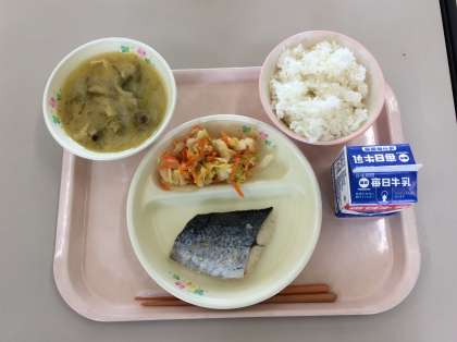ごはん さわらの塩焼き 白菜のそくせきづけ じゃがいもの味噌汁 牛乳 761kcal