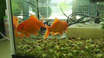 支援学級の教室には可愛い金魚がいます。9匹いますがこの2匹はとても元気で泳ぎ回るので見ていてとても楽しいです。