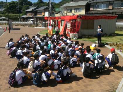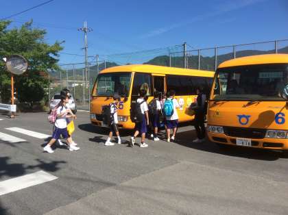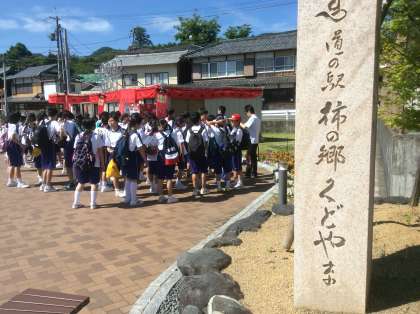 快晴のもと、1 年生の校外学習、いよいよスタートです。みんな元気に九度山を散策します。