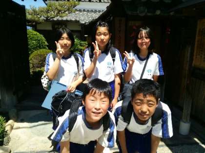 旧萱野家前でB組3班と出会いました♪