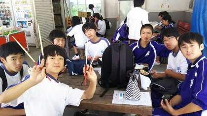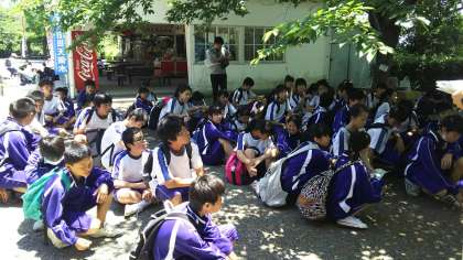 全員無事集合してお昼前にウォークラリーの優勝者の発表です。B組の3班が優勝しました?