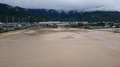 今日も残念な大雨です。明日に予行を控え、各ブロックマスゲーム練習に精を出してます。今日の給食はみんなが大好きなエビチリでした。なので、元気に頑張ってます。グラウンドは御池になってます。明日はできるのかな?
