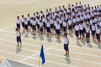 生徒会長村田優斗くん、宣誓大久保晴琉さん、体操号令ならびに赤組団長中野瑛己くん、青組団長は宮本大也くんです。