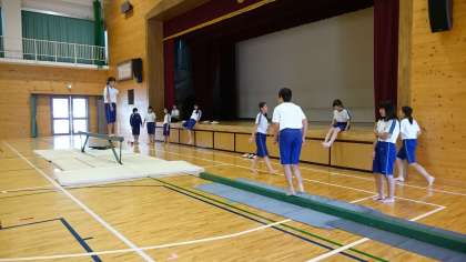 平均台は高さが1m,下にマットを敷き詰めているので、万が一落下してもけがはしません。わずか10センチの幅も慣れてきてすいすい歩行しています。