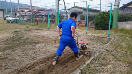 校長先生が耕耘機を直してくれ、教頭先生がガソリン購入に行ってくれ、明日の1年女子の走り幅跳びの授業に間に合わせてくれました。本当にありがたい限りです。砂場が柔らかいと着地のとき、安定します。明日も頑張ります。