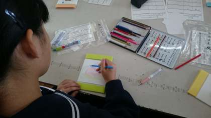 保育の授業で、くるくる絵本作成中です。まもなく、可愛い絵本が完成します。