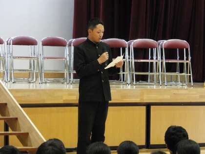 文字通り、生徒187名の代表「6名の生徒会執行部役員」を投票で選びます。社会の縮図である学校社会を当選した執行部できりもりしてもらいます!城向選挙管理委員長の諸注意のあと選管が粛々と演説会を取り仕切りました。当選発表は10/21、任命は25(火)始業式で行います。
