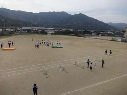 男女仲良く3種の陸上競技に挑戦しています。スポーツの秋です。走る、跳ぶ(高跳び・幅跳び)と、思い存分運動を満喫しています。身体を動かすこと。つづけてもらいたいです。