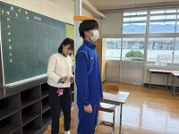 妙寺中学校に年賀状の販売にきてくれました!先生相手に,うまく営業できるかな?