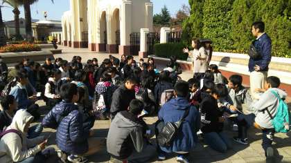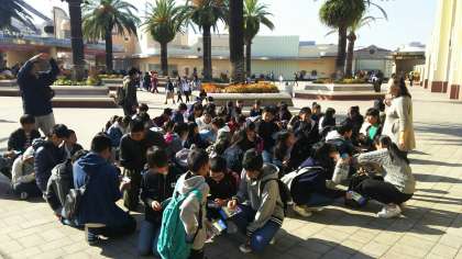 先程USJに到着しました。入園チケットをもらってグループごとに活動開始です!