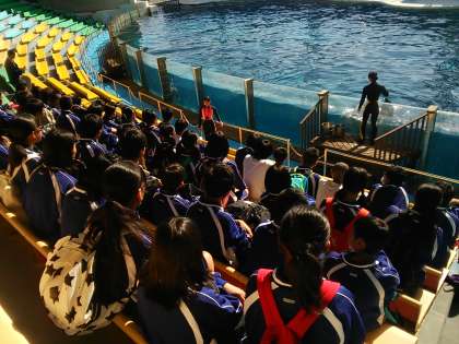 入場が少し遅れたため、イルカとふれあうことができませんでした。