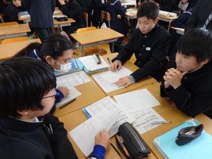 対話的な授業を通して自らが考えるアクティブ・ラーニングの手法を用いています。この子たちは中一からこのスタイルで学んできました。