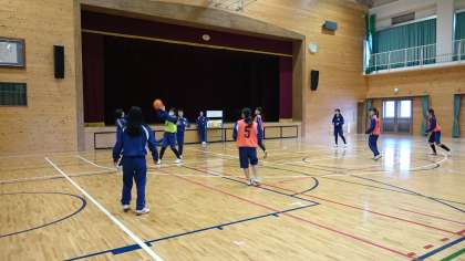 バスケットボールで汗を流しました。声をかけあい、和気あいあいとゲームしています。