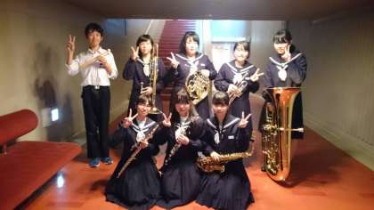 1/15(日)和歌山市民会館で開催されていた県アンサンブルコンテストに出場した混合八重奏のメンバーです。金賞に輝きましたが、県代表にはなれませんでした‥やり遂げた達成感に満ちたピースです!