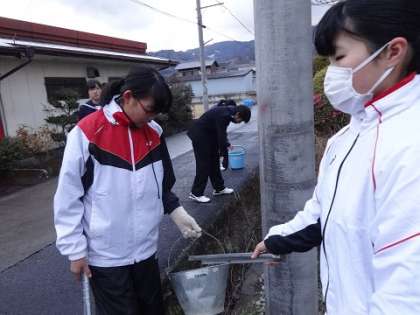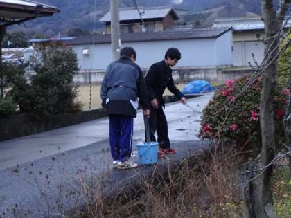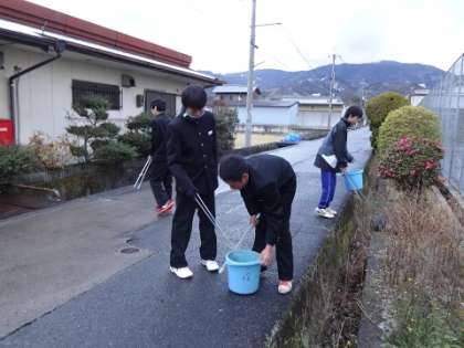 あいさつ運動と並行して、美化委員が校舎周辺のゴミを拾ってくれます。
