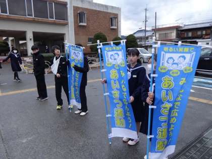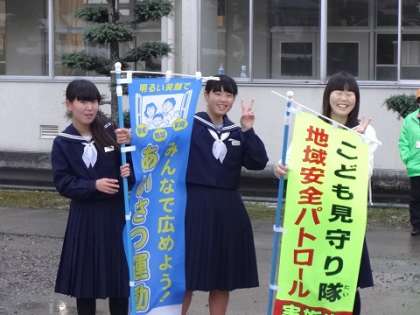 新年最初のあいさつ運動です。民生児童委員さんには本年もお世話になります。ただ、今朝は値打ちのあるものとなりました…お風邪をひかないように祈ります。