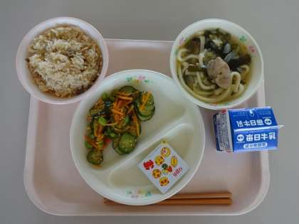 かやくうどん(若鶏もも肉、葉ねぎ、蒲鉾、わかめ、玉葱、椎茸)