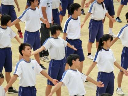 予行後の手直し2 日本が誇るラジオ体操 伸ばすとこは伸ばす曲げるとこは曲げる!