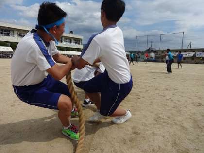 綱引き男子は赤が圧勝 青赤 トータル引分け!