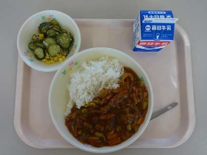 9/21(木)今日の給食 公開日 2017/09/21 更新日 2017/09/21 給 食 玄米ごはん ハヤシライス(豚もも肉、玉葱、人参、エリンギ、しめじ、枝豆、トマト) きゅうりとツナのサラダ 牛乳 788kcal