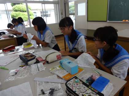 グループごとのテーブルで、みんなで教えあって頑張っています。もうすぐできあがります。