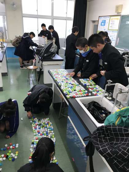 中央委員会でエコキャップ運動に取り組んでいます。11月27日から今日までに集まったペットボトルキャップを集計しました。合計8367個集まりました。ご協力ありがとうございました。