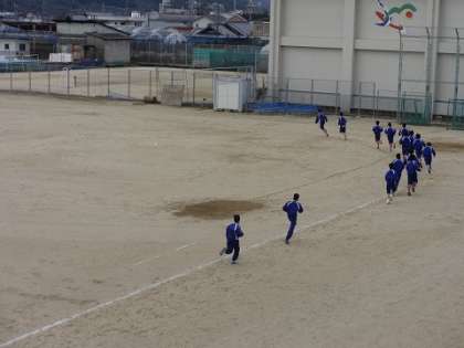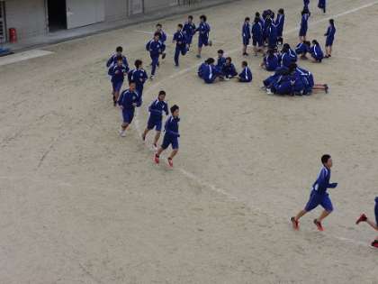 寒風のなかでの2年体育 持久走のタイムどり!