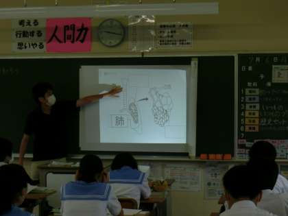 英語「●○を〜と呼ぶ」の文を作るのにチャレンジ!理科は「肺のしくみ」を学習。