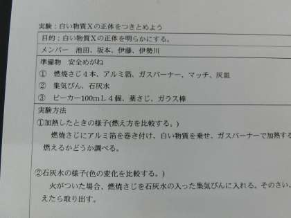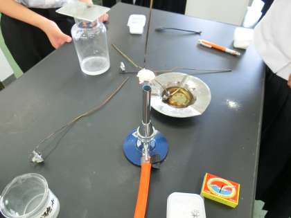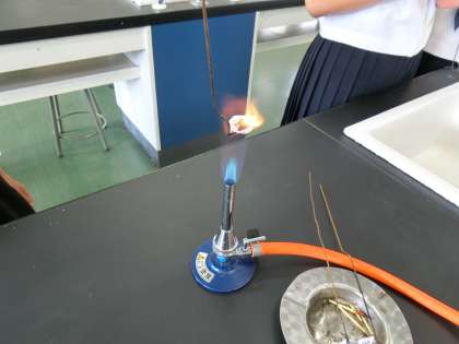 1年A組は理科。白い粉の正体をいろいろな方法で探っていました。ガスバーナーの使い方もまだぎこちなかったですが頑張っていました。