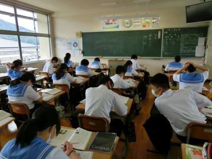 1A社会、1B国語。来週からテスト発表となります。今まで学習してきた範囲の問題に取り組んでいます。