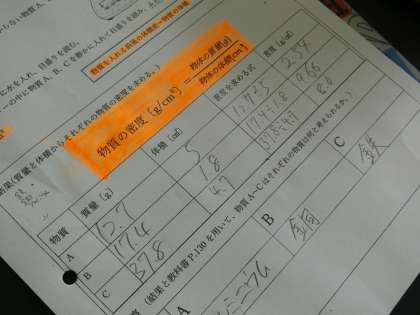 理科はメスシリンダーとはかりを使って、体積と質量を測定し「密度」を計算で求めることで、物体がアルミニウムか鉄かどうかを調べました。