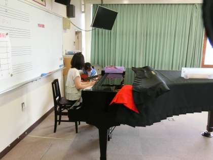 音楽はギターのテスト。ギターの持ち方もさまになってきたようです。