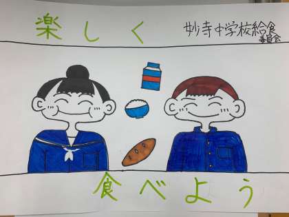 今週の木金と、来週の月火水まで残食調査を行います。絵は給食委員会で作成したポスターです。