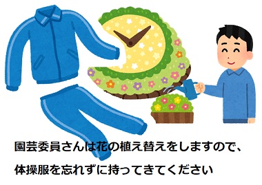 持ち物:体操服・防寒具 ※軍手は学校で準備します