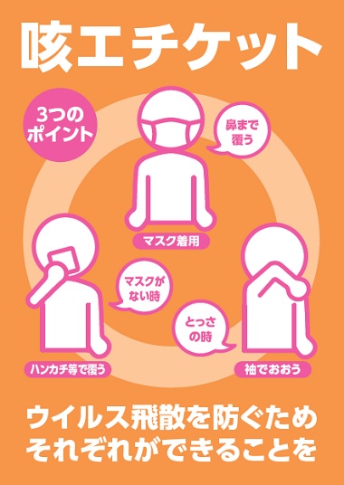 毎朝の健康観察・検温とともに「咳(せき)エチケット」を守って生活しましょう。