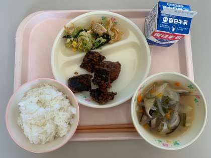 ●ご飯 ●鯨の竜田揚げ ●油揚げの胡麻酢和え ●味噌汁 891キロカロリー