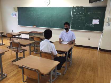一人一人隣の教室で、ALTの先生と、スピーキングテストを行っています。