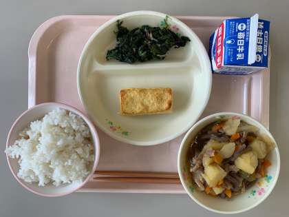 ●ご飯 ●肉じゃが ●ゆかり和え ○厚焼き玉子 792キロカロリー