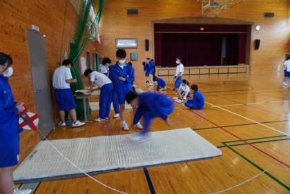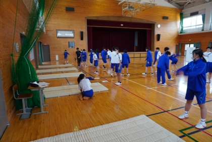 3年生は立ち幅跳びに挑戦していました。腕をしっかり振って体全体を使って頑張っていました。
