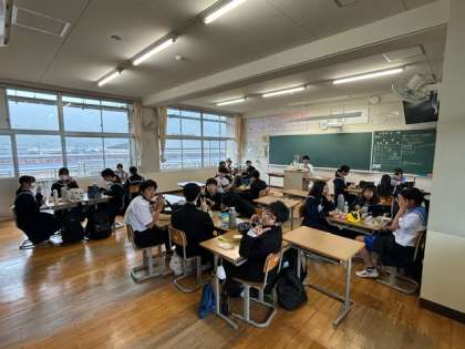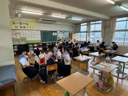 予定していた三谷坂ウォークは雨のため延期となり、教室でみんなでお弁当を食べました。