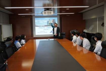 アサヒグループに訪問させていただき、お話を聞かせていただいています。
